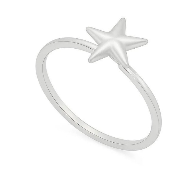 Com acabamento liso e superfície uniforme, a estrela possui volume suave e linhas arredondadas, criando um contraste elegante com o aro delicado. A composição resulta em uma peça discreta, porém com identidade visual clara, ideal para quem aprecia acessórios com símbolos sutis.